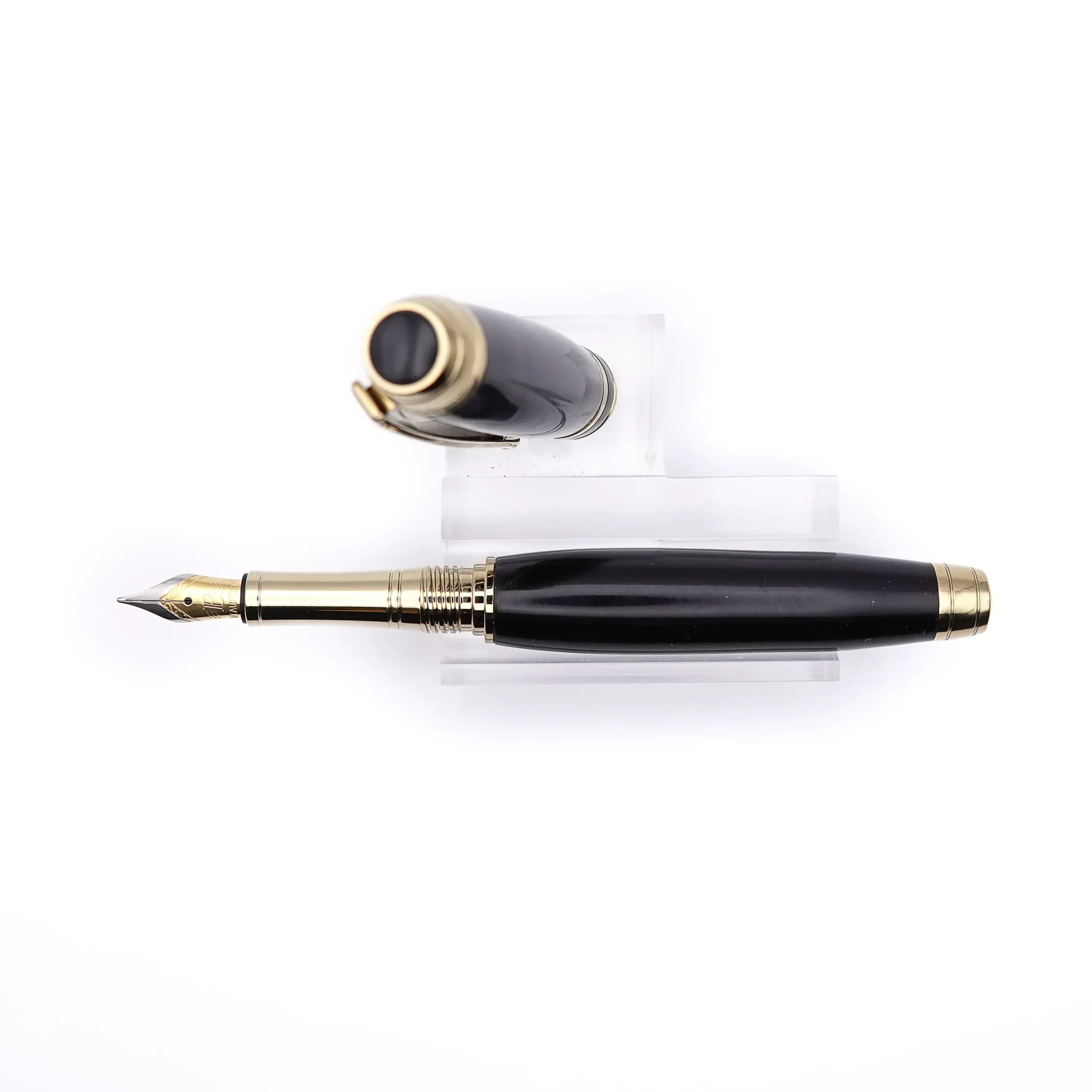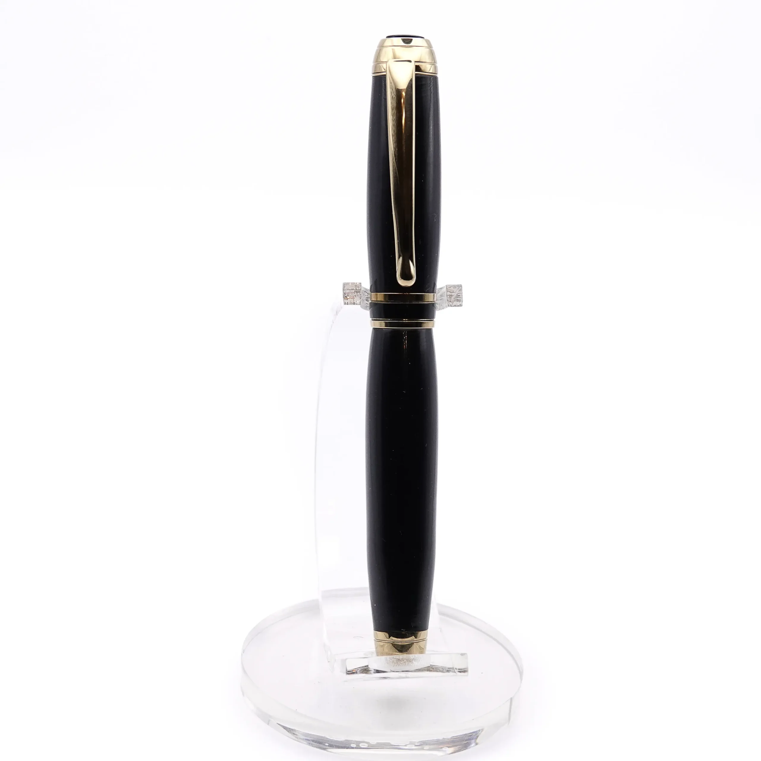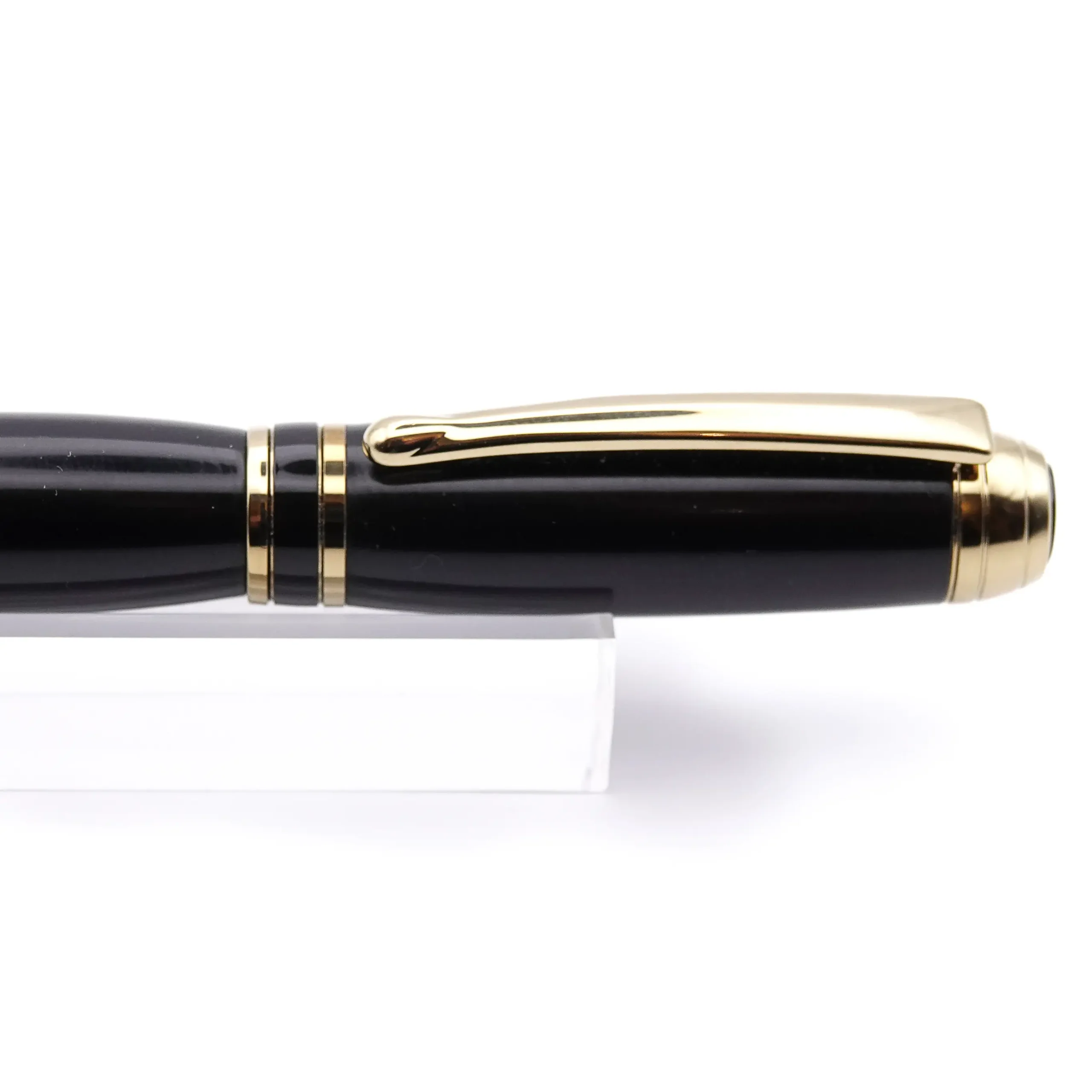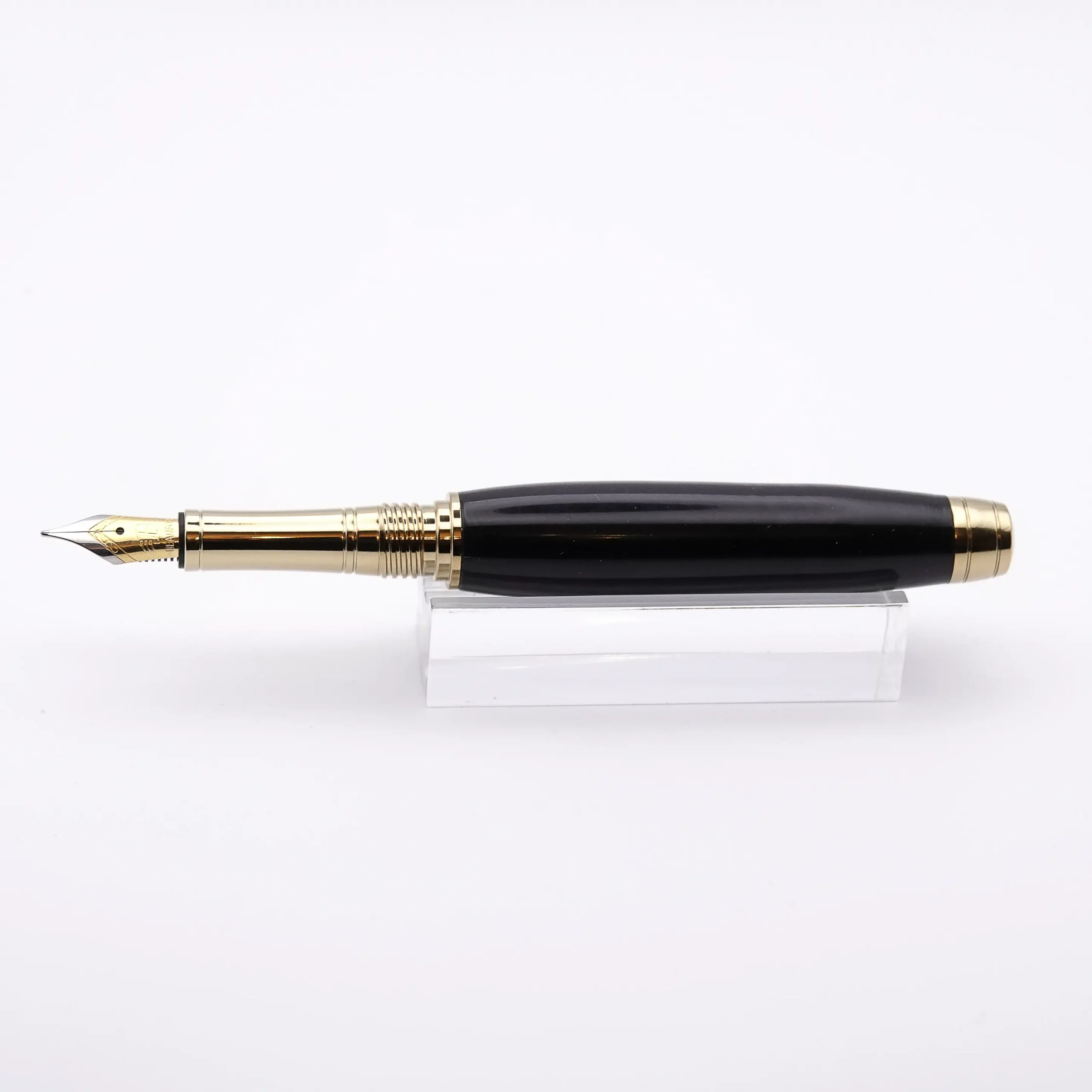 Luxury Black Fountain Pen with Titanium Gold Plating and Black Chrome Centre Ring and Cabochon (1000)