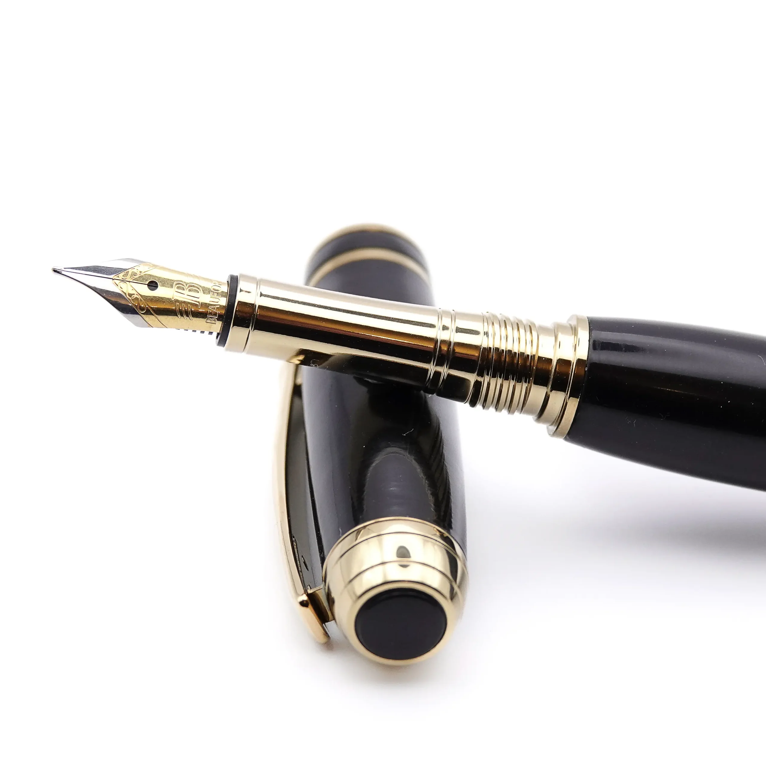 This is a stunningly beautiful, luxury, top of the range, fountain pen with the highest quality fittings that should last a lifetime. Made from Black Resin with Titanium Gold  fittings and Black Chrome Plated Centre Ring and Cabochon making a lovely, elegant pen that would grace any desk or office. Titanium plating is a much tougher finish than normal plating and therefore is a harder wearing finish on this pen making it almost impossible for the plating to wear.