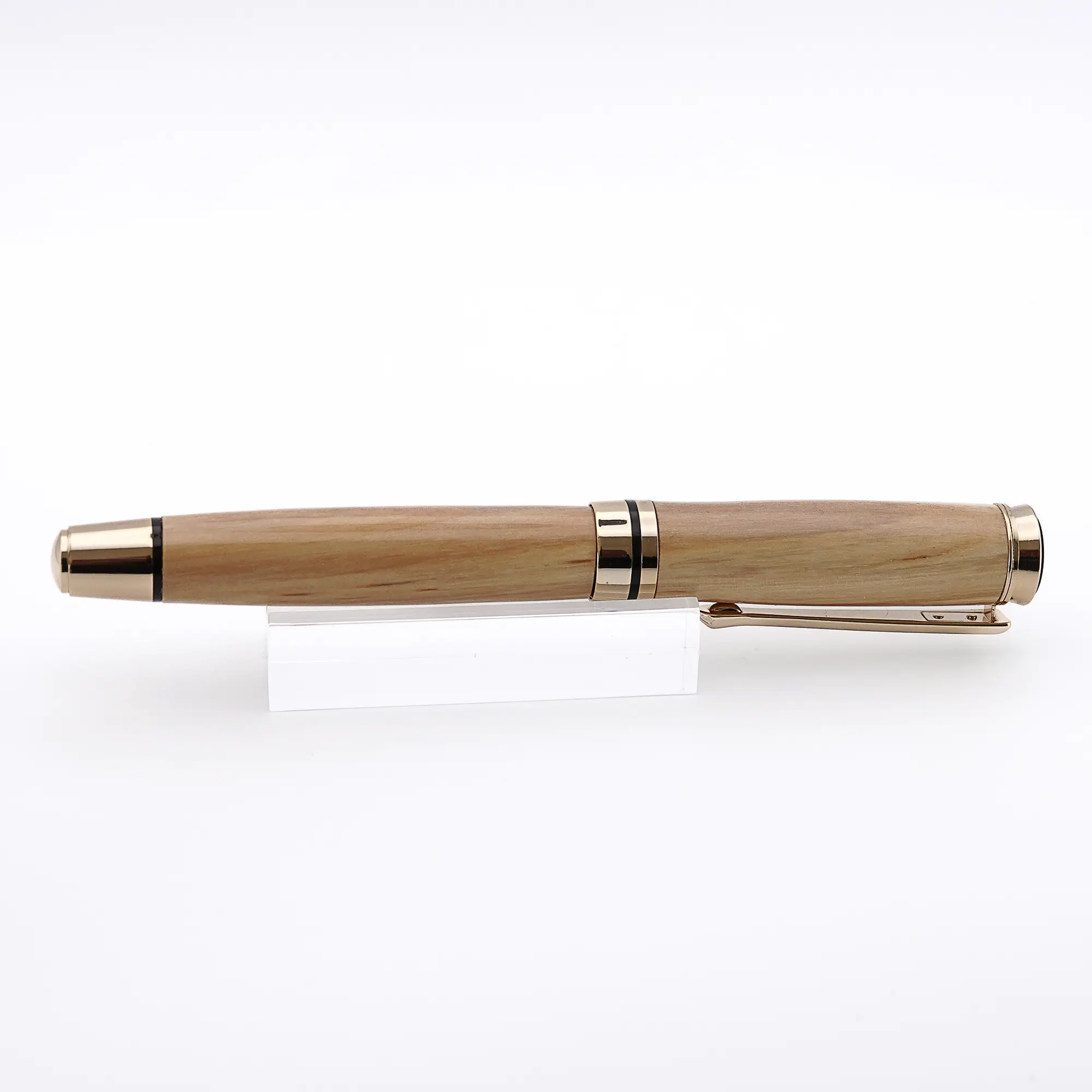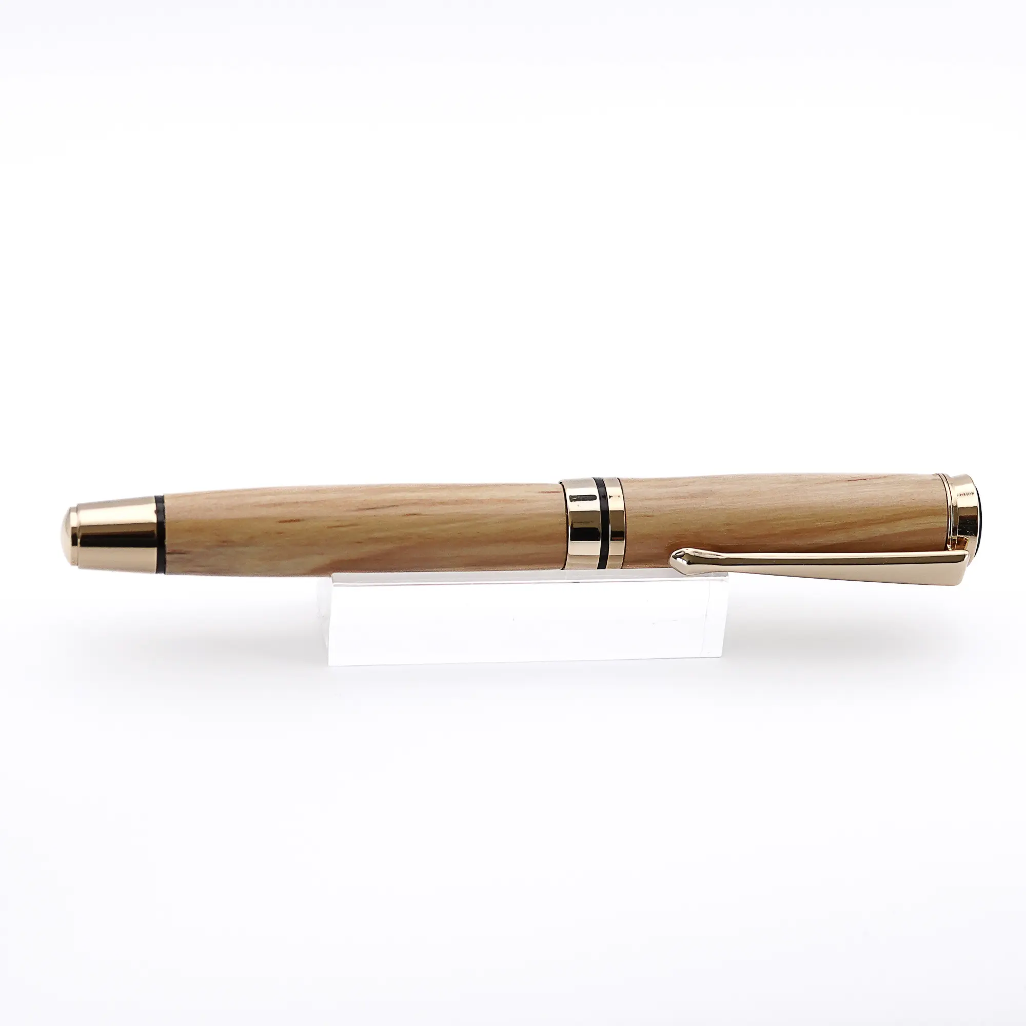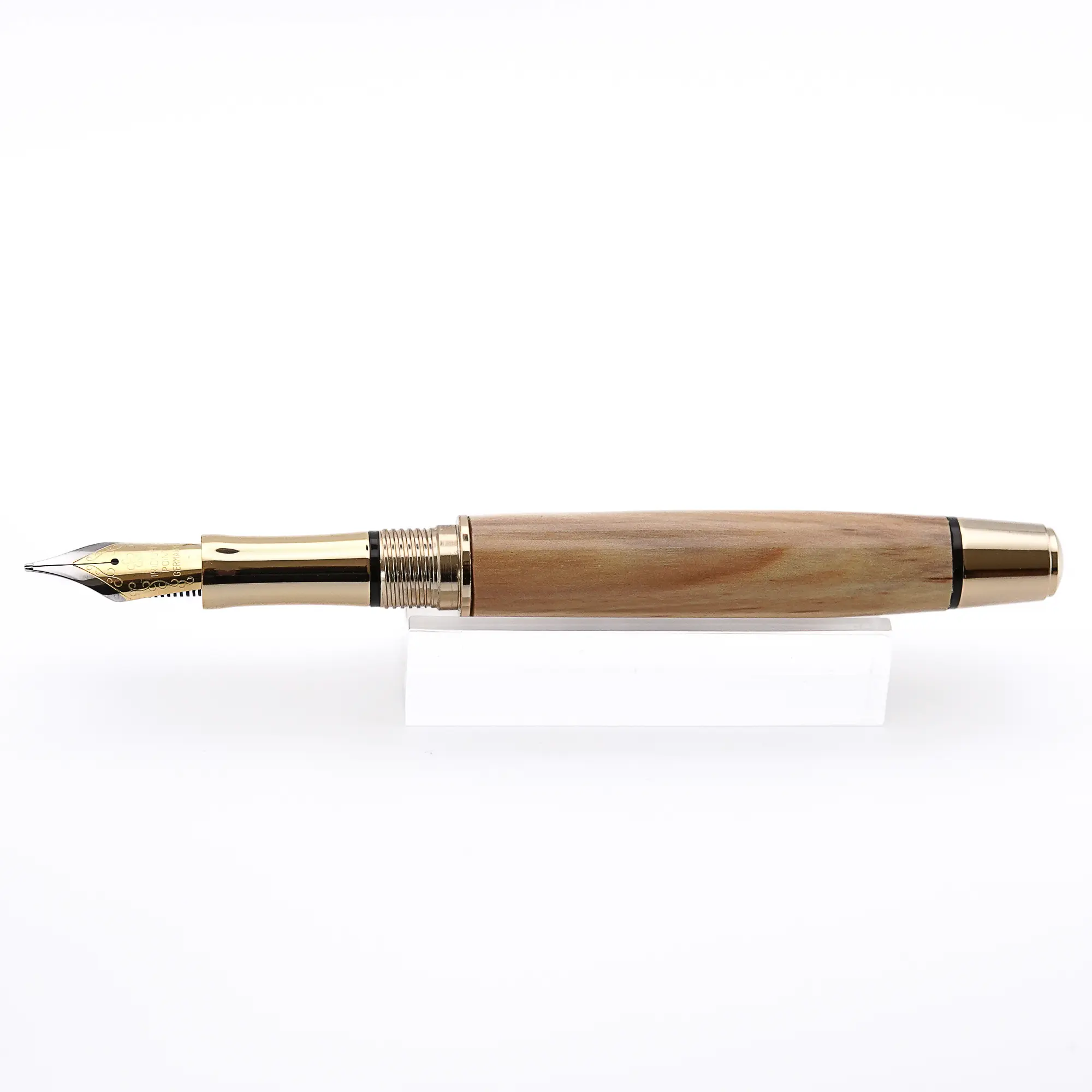 Like a lot of best quality pens, the finished pen is not “pillared” so the cap cannot be fixed to the back of the pen.  The nib has an iridium point and comes with an ink converter, cartridges and is in a black velveteen pouch (or a Hard Velvet Pen Case as an added extra). Please note that wood is a natural material and can have faults which can sometimes be felt even after numerous coats of finish.