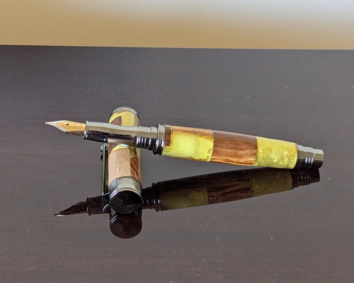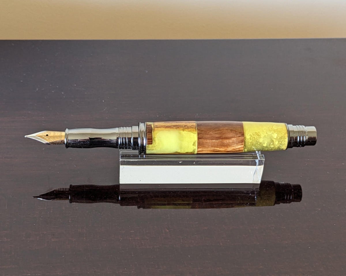 Yellow / White Resin & Wooden Fountain Pen with Gold Plated Fittings (393)