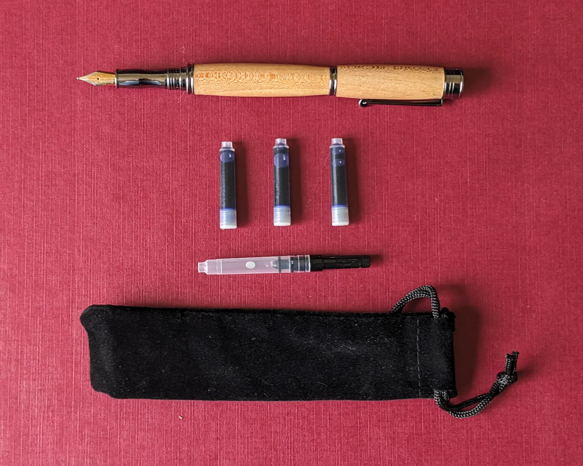 Included: Ink converter and ink cartridges. Comes complete with a black velveteen pen pouch.
