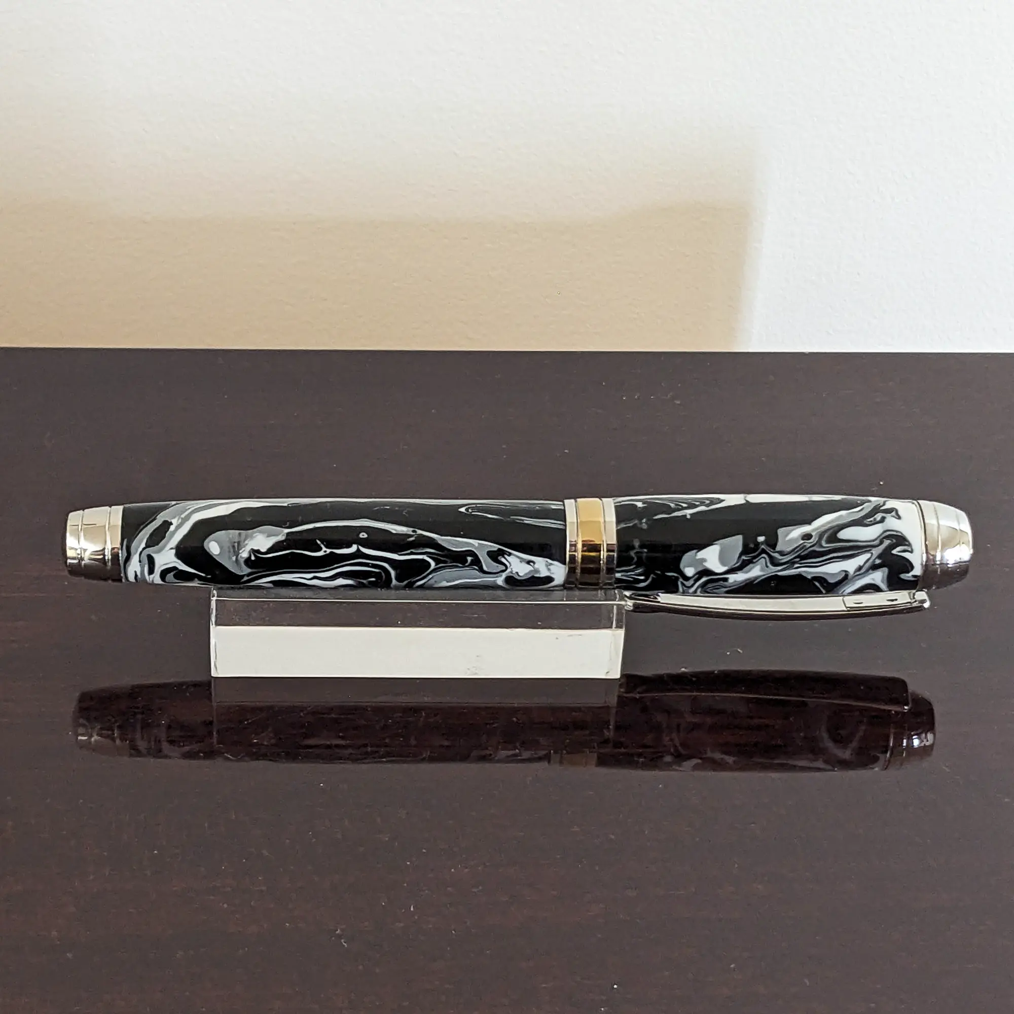Handmade Luxury Black and White Fountain Pen that would make a great retirement, anniversary or birthday gift