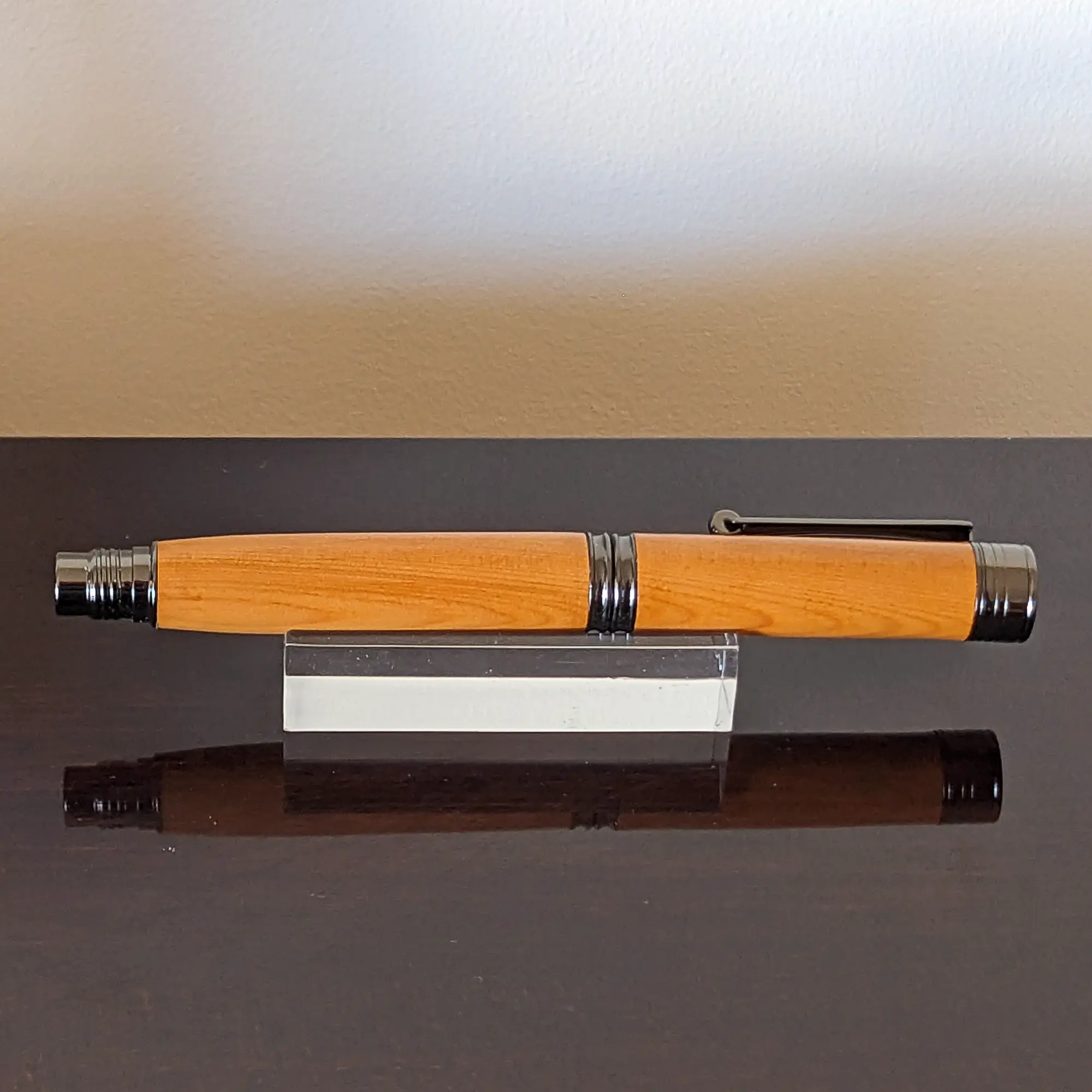 This is a beautiful Rollerball Pen is made from a piece of recycled Yew with Gun Metal Plated fittings.
