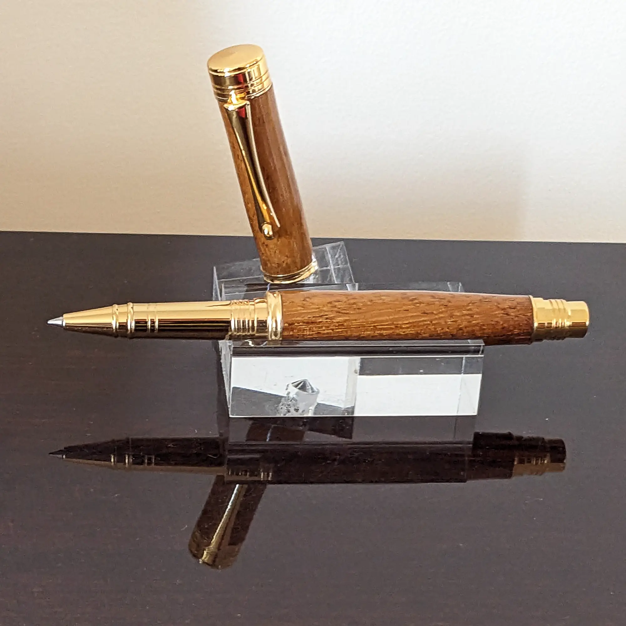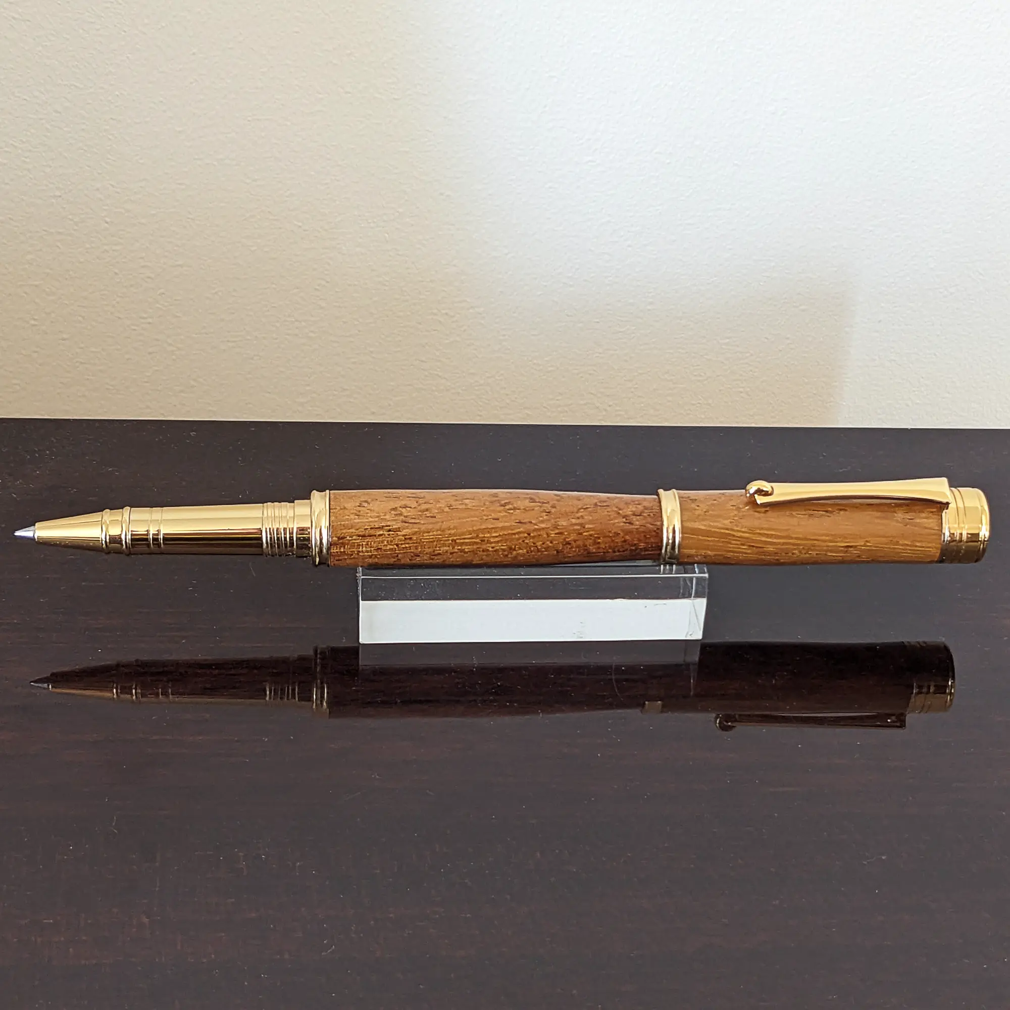 Recycled Iroko Rollerball Pen with Gold Plated Fittings (922)