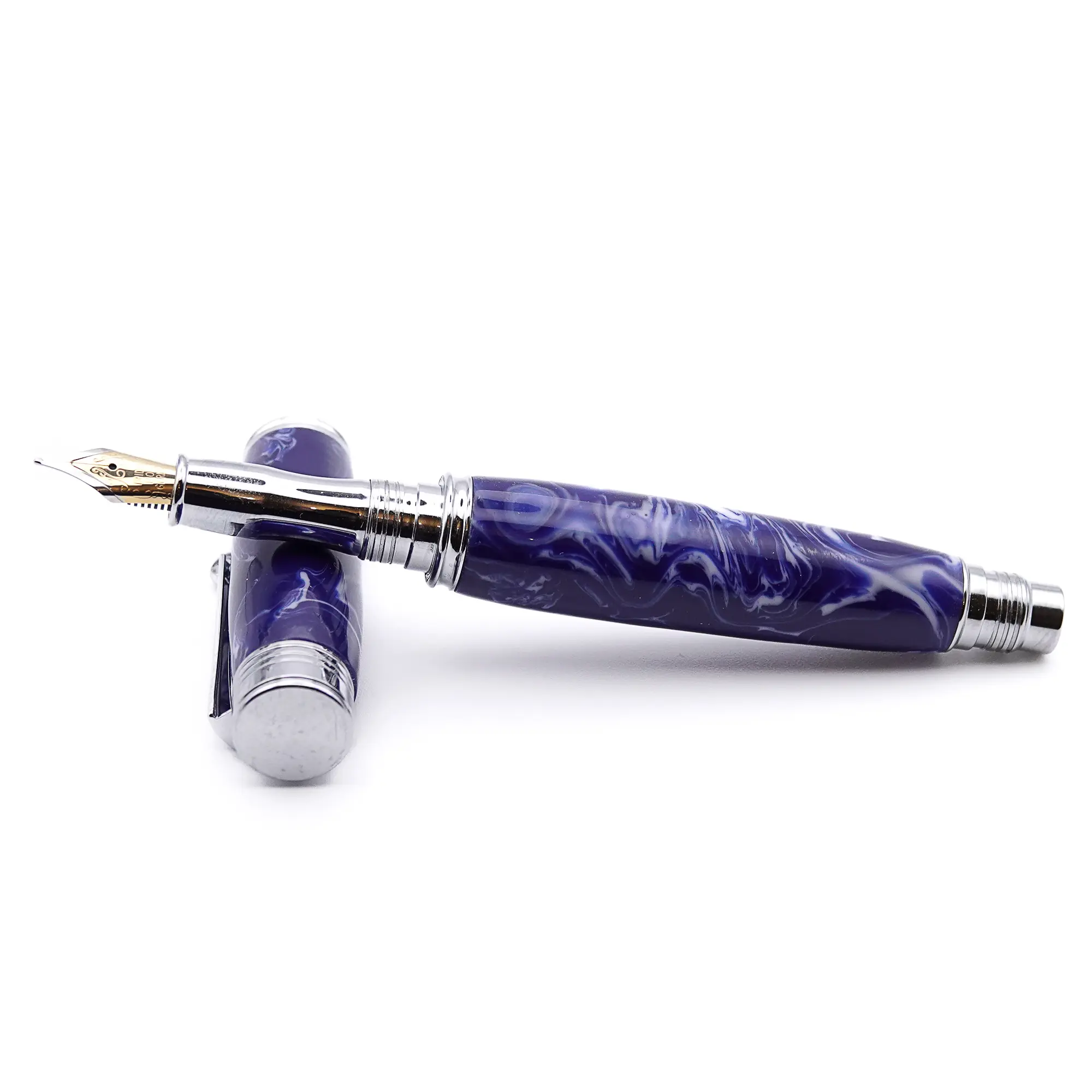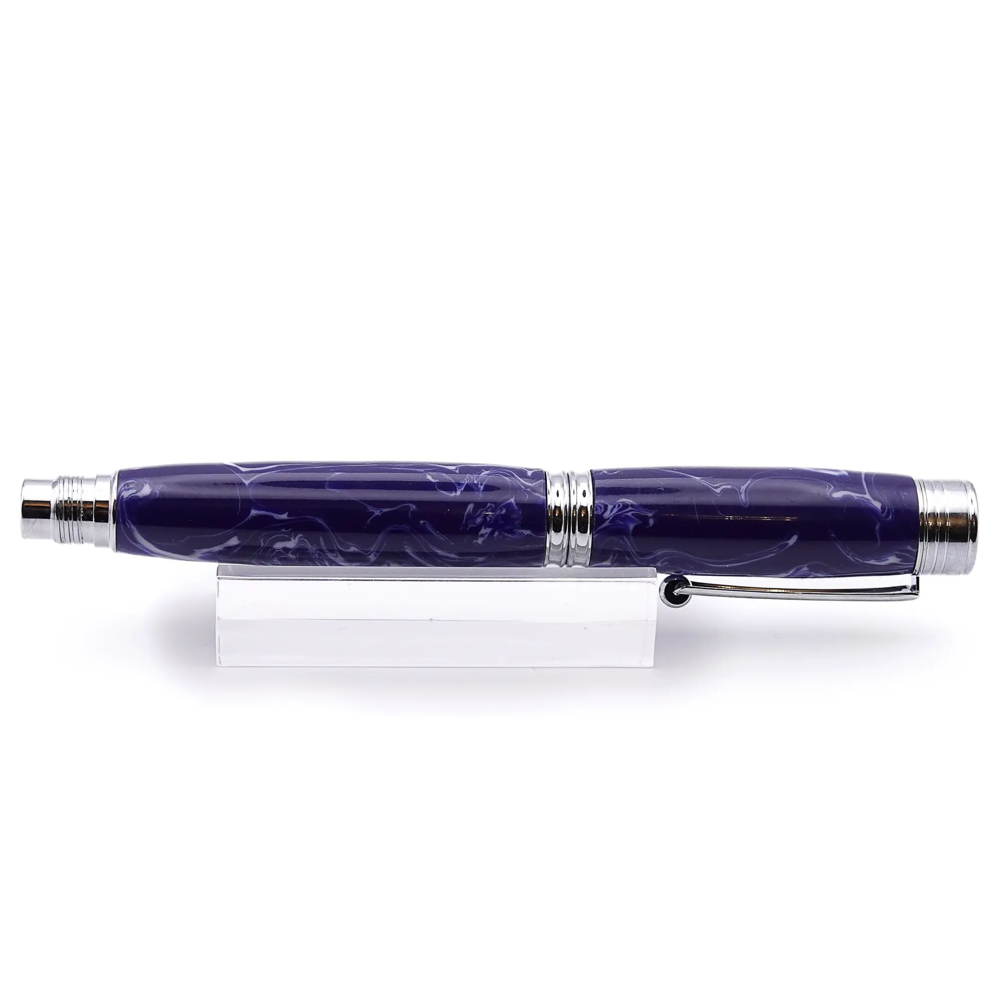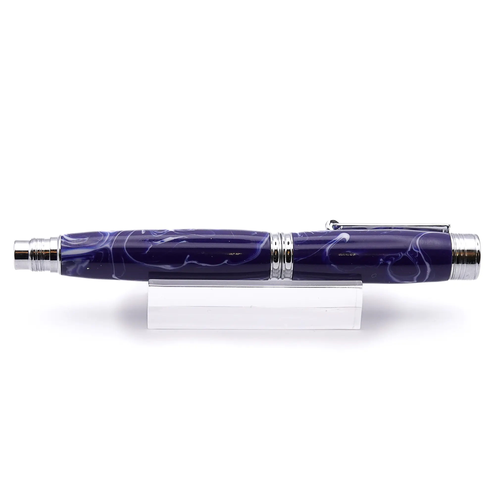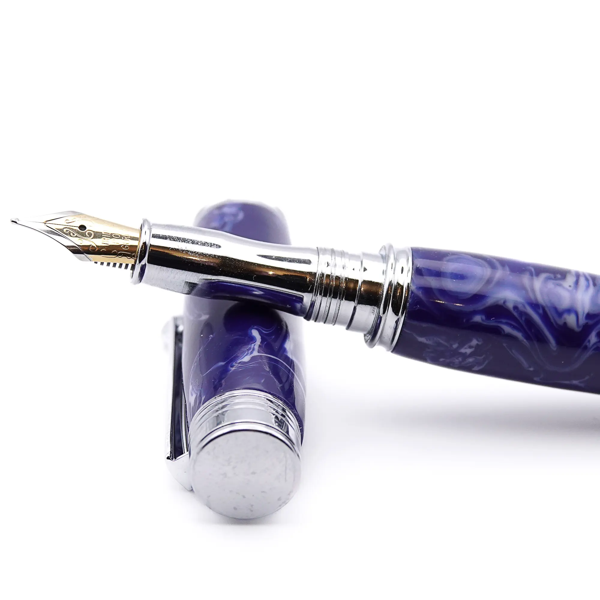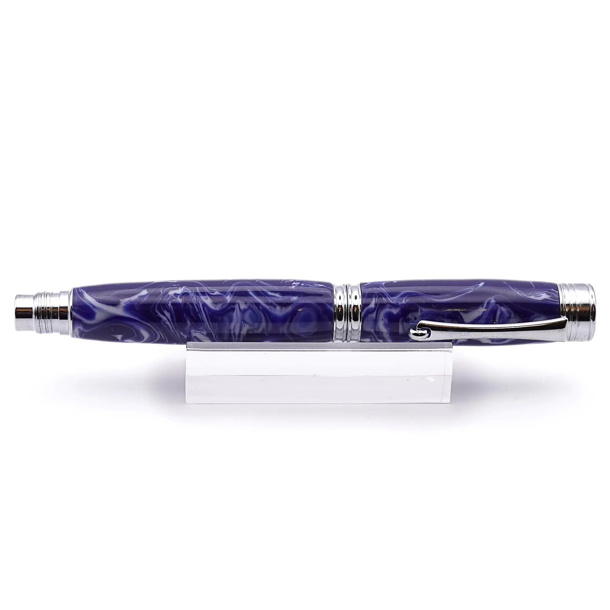 Beautiful Fountain Pen that has been constructed from a mixture of Blue and White resins to give a unique effect with Chrome Plated fittings that compliments this pen nicely. It is nicely balanced and enjoyable to use.