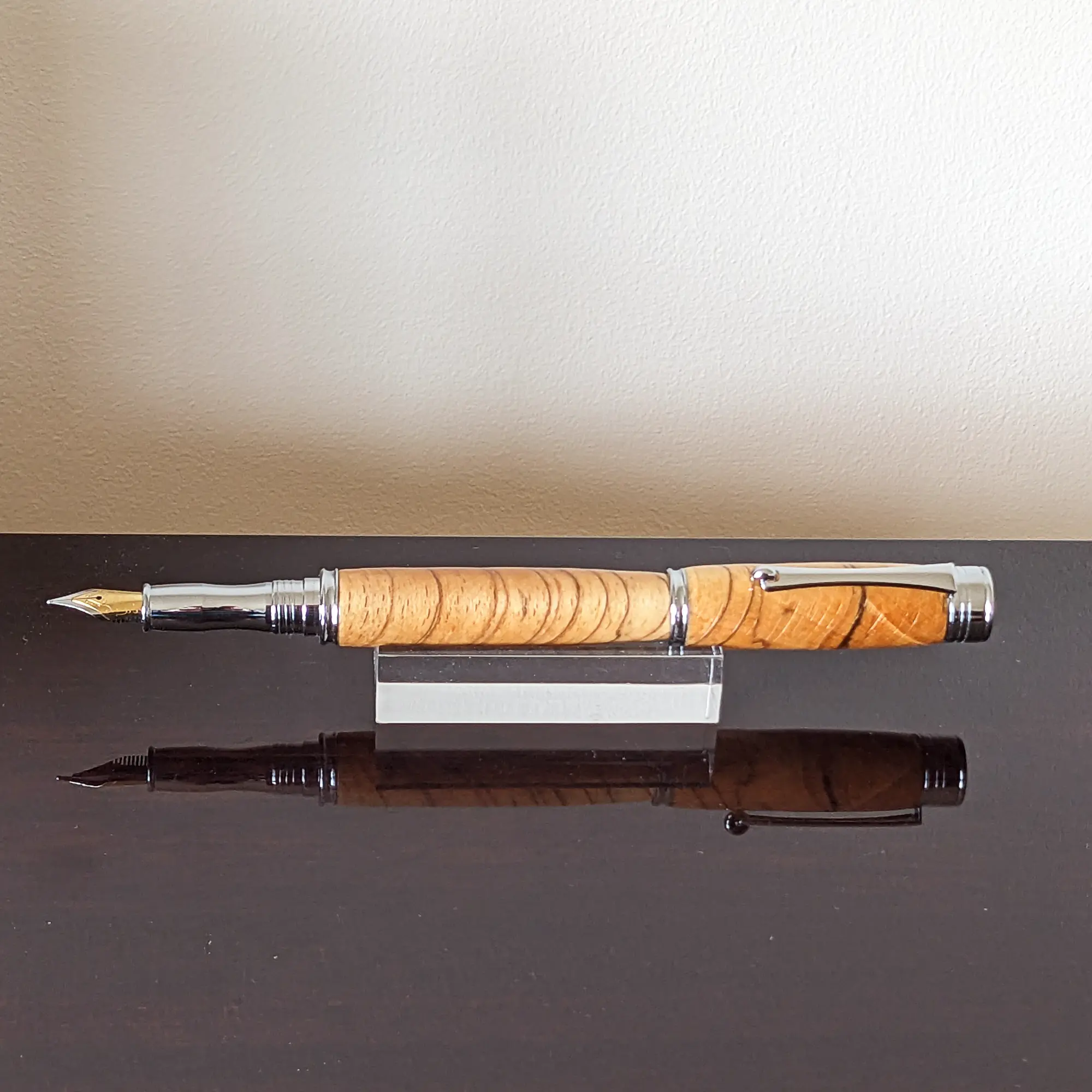 Recycled Spalted Beech Fountain Pen with Chrome Plated Fittings (929)