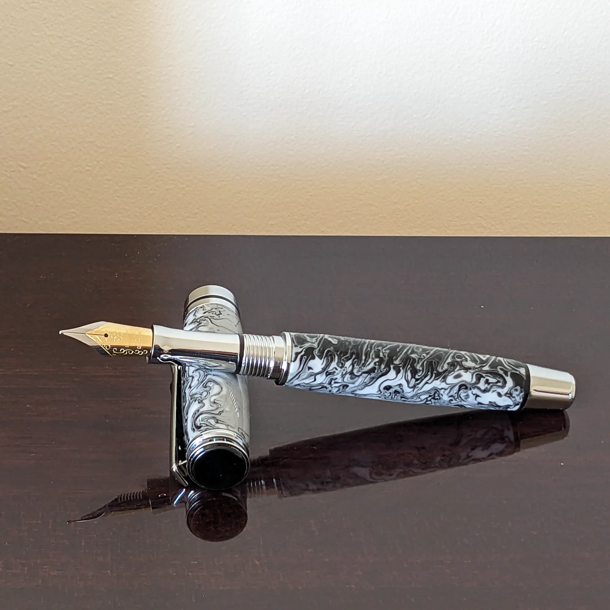 Black and White Fountain Pen with Chrome and Black Chrome Plated Fittings (933)