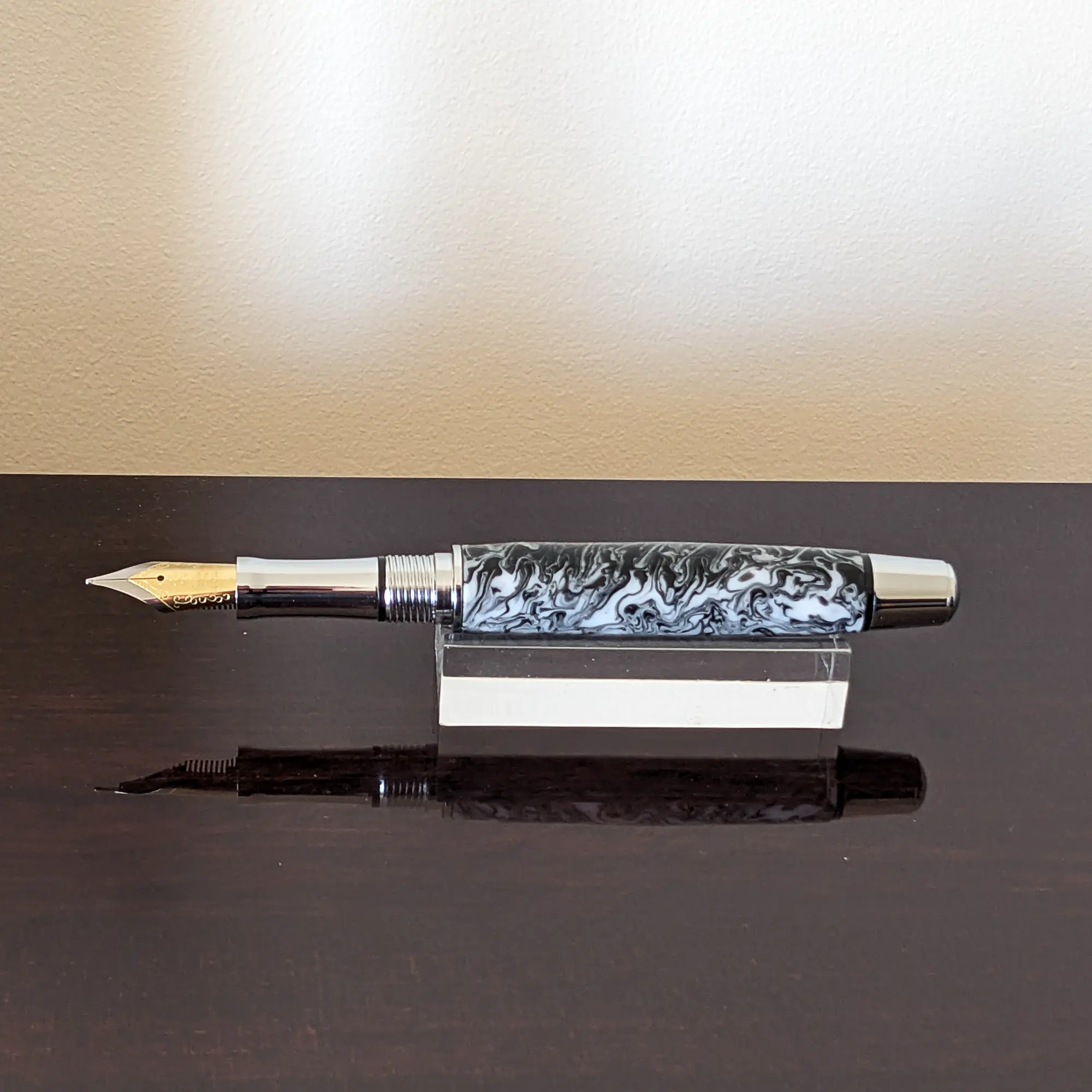 Handmade Black and White Fountain Pen that would make a great retirement, anniversary or birthday gift.