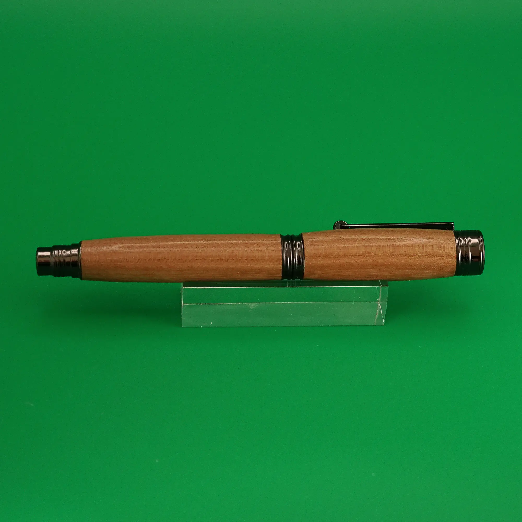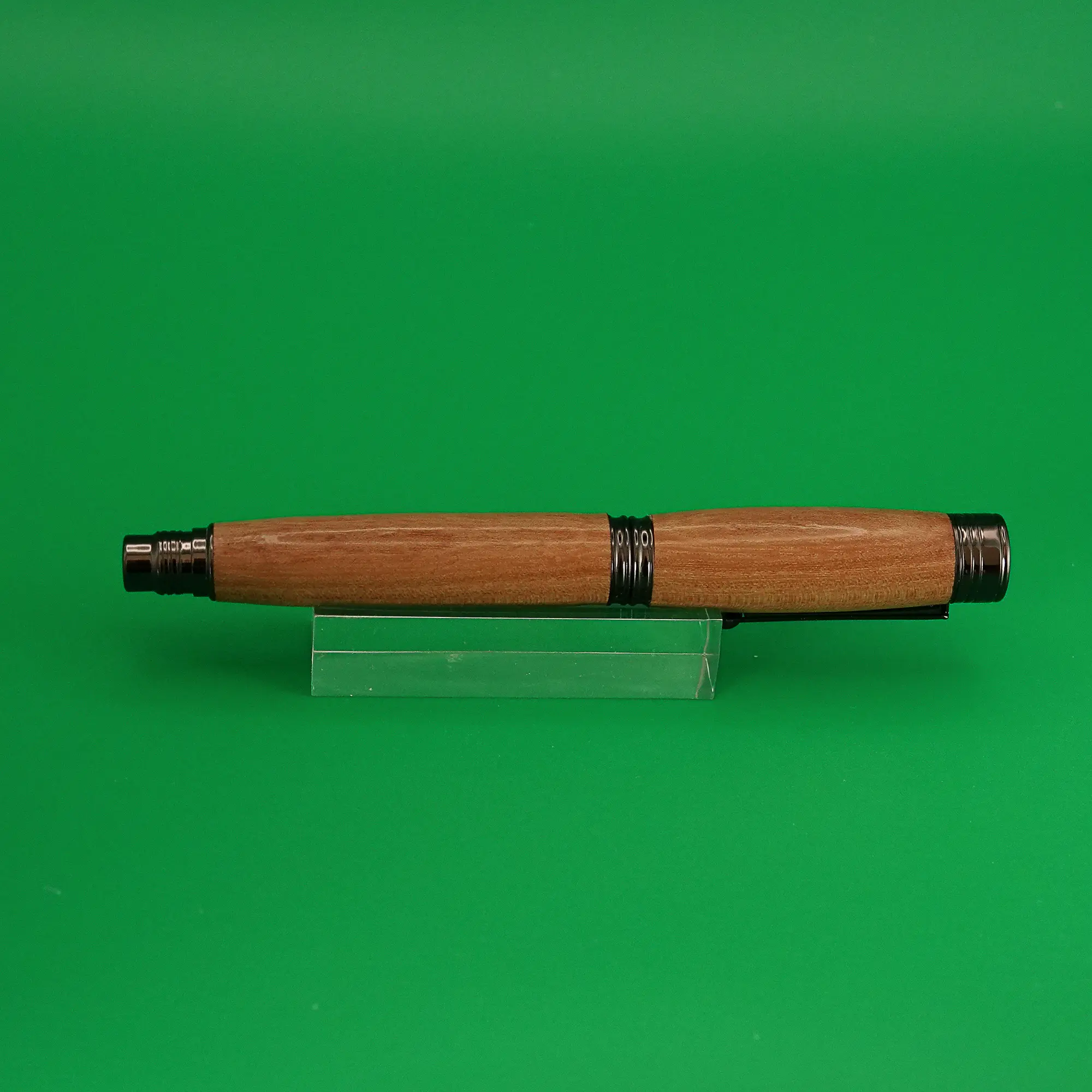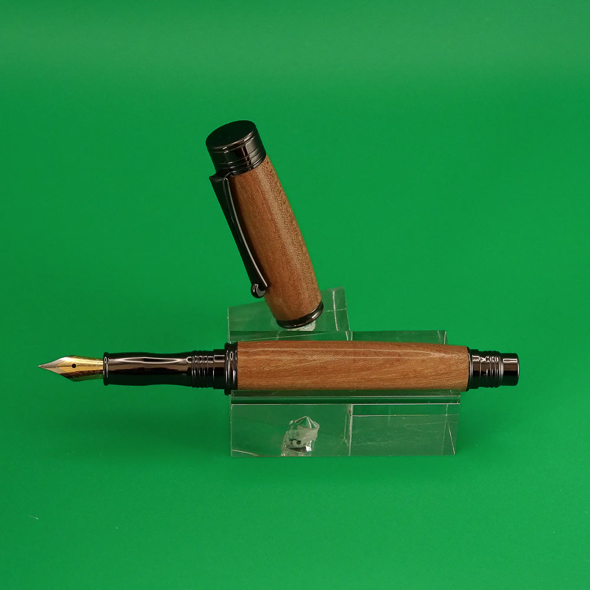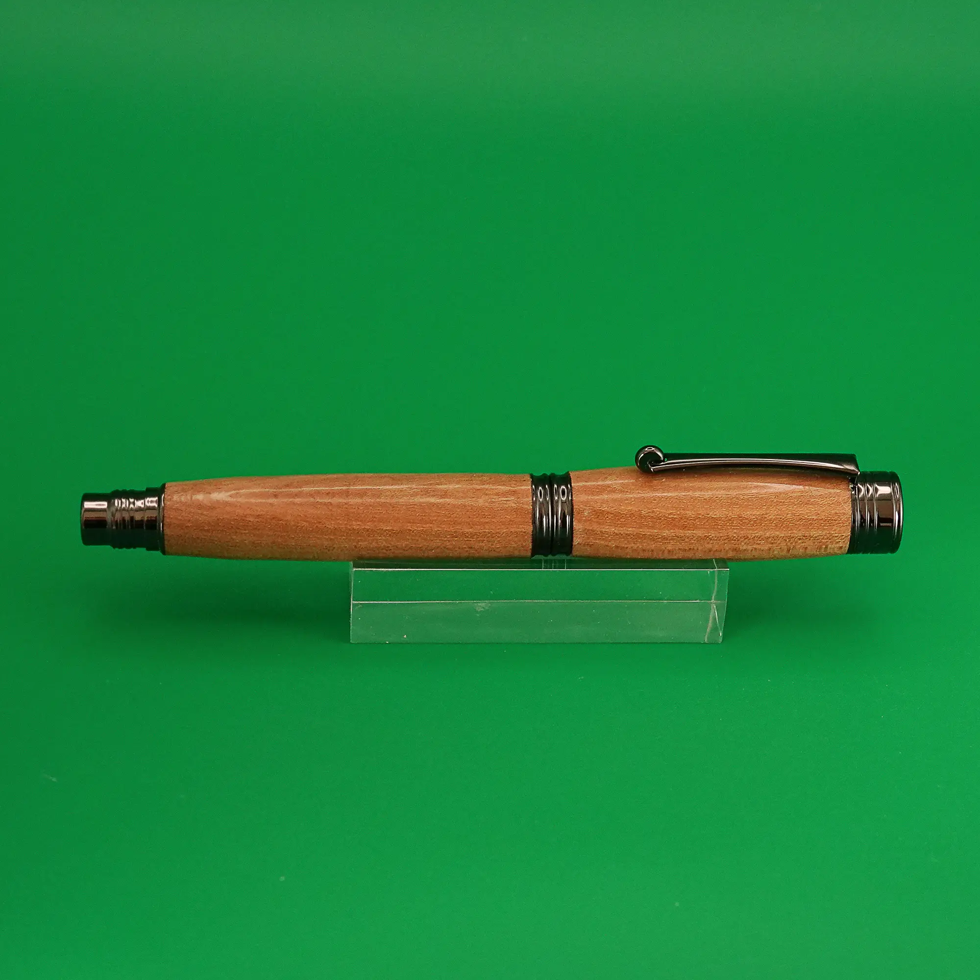This superb fountain pen is constructed from a recycled piece of English Elm with Gun Metal Plated Fittings. The pen is “pillared” so that the cap can be screwed on the back of the pen to extend it for anyone who likes to use a longer pen. The nib has an iridium point.