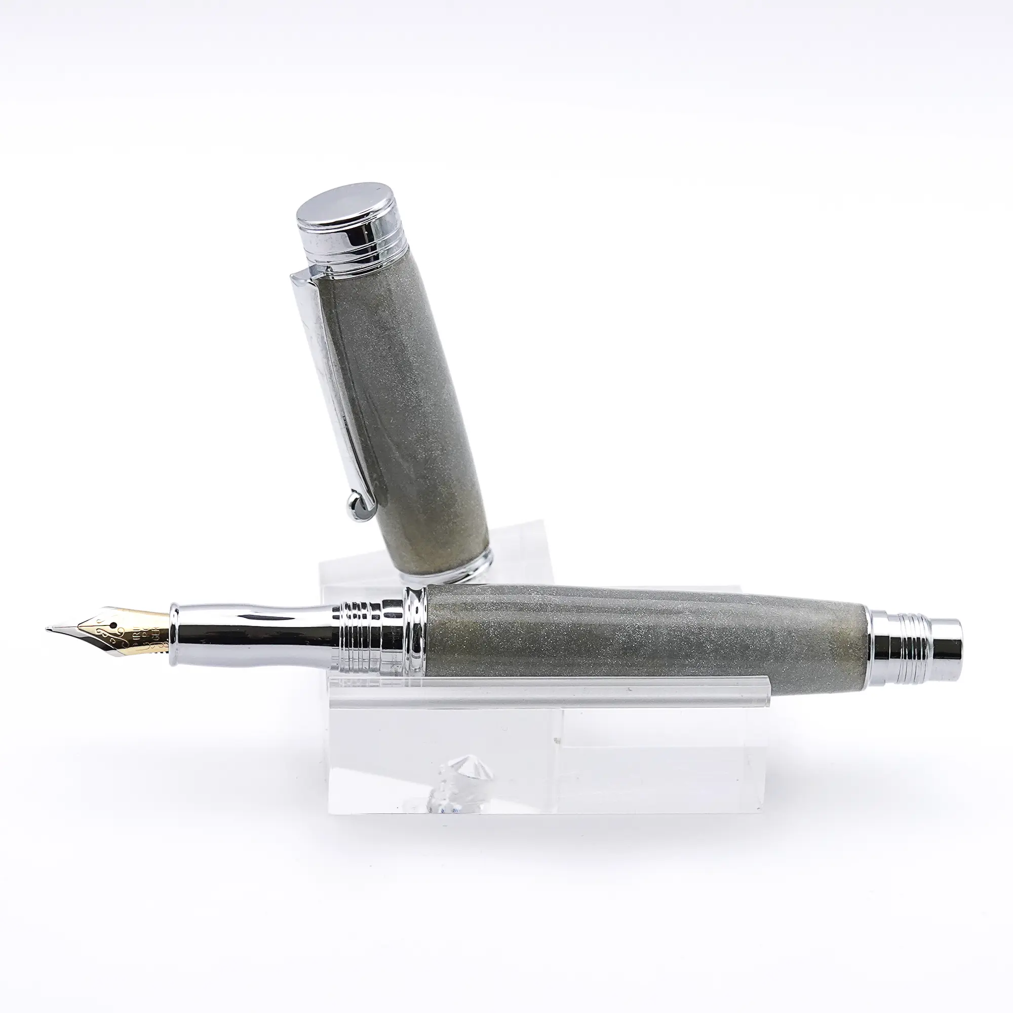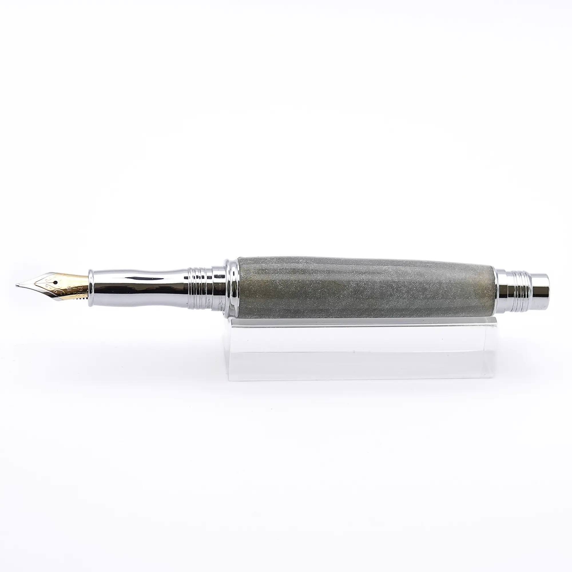 Lovely Handmade Silver Grey Marbled Fountain Pen made in Devon.
