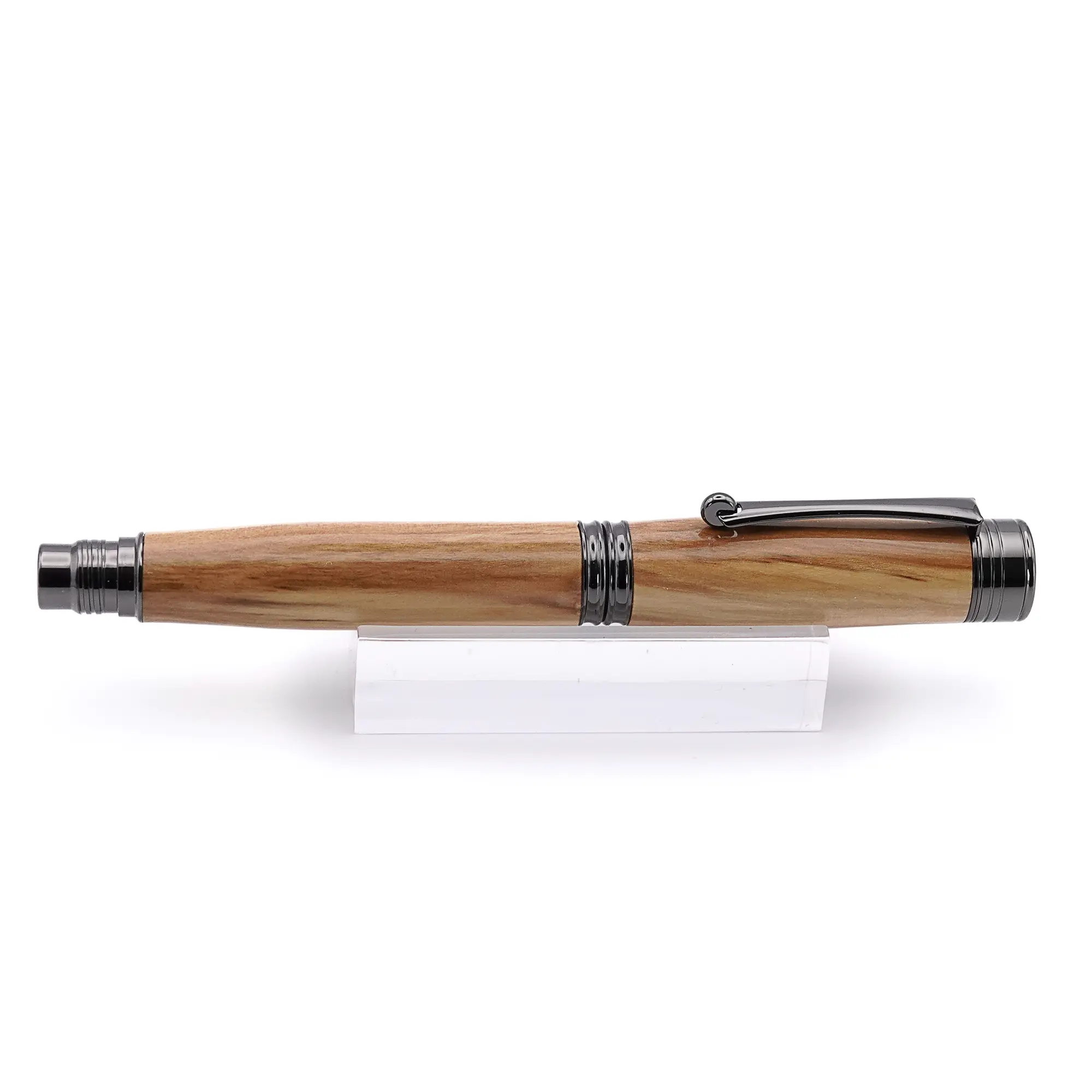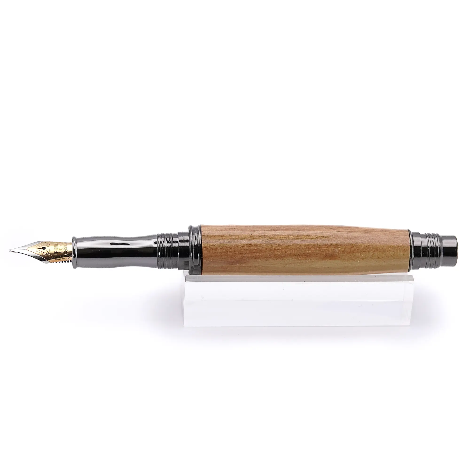 Handmade Olive Wood Fountain Pen with Gun Metal Plated Fittings (986)