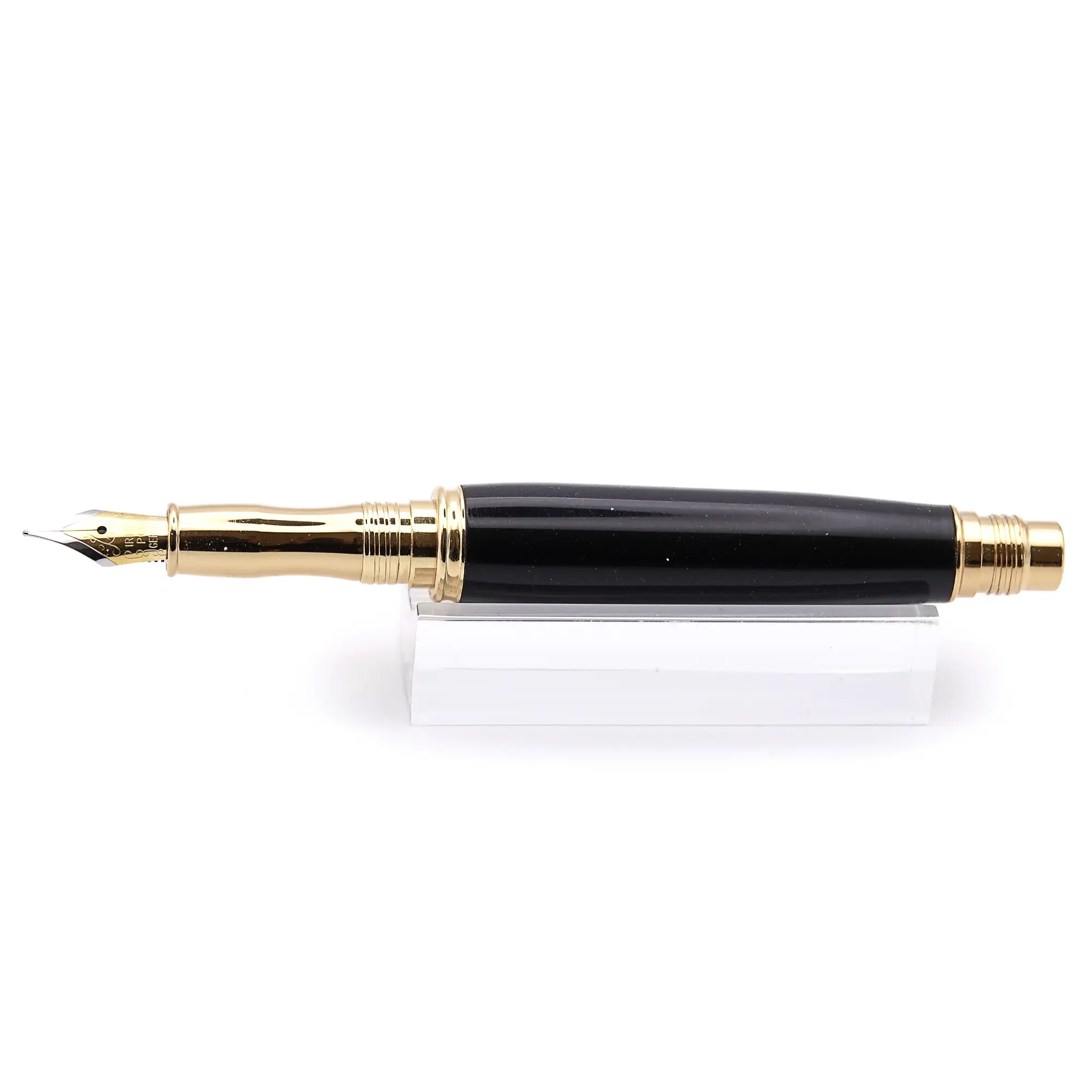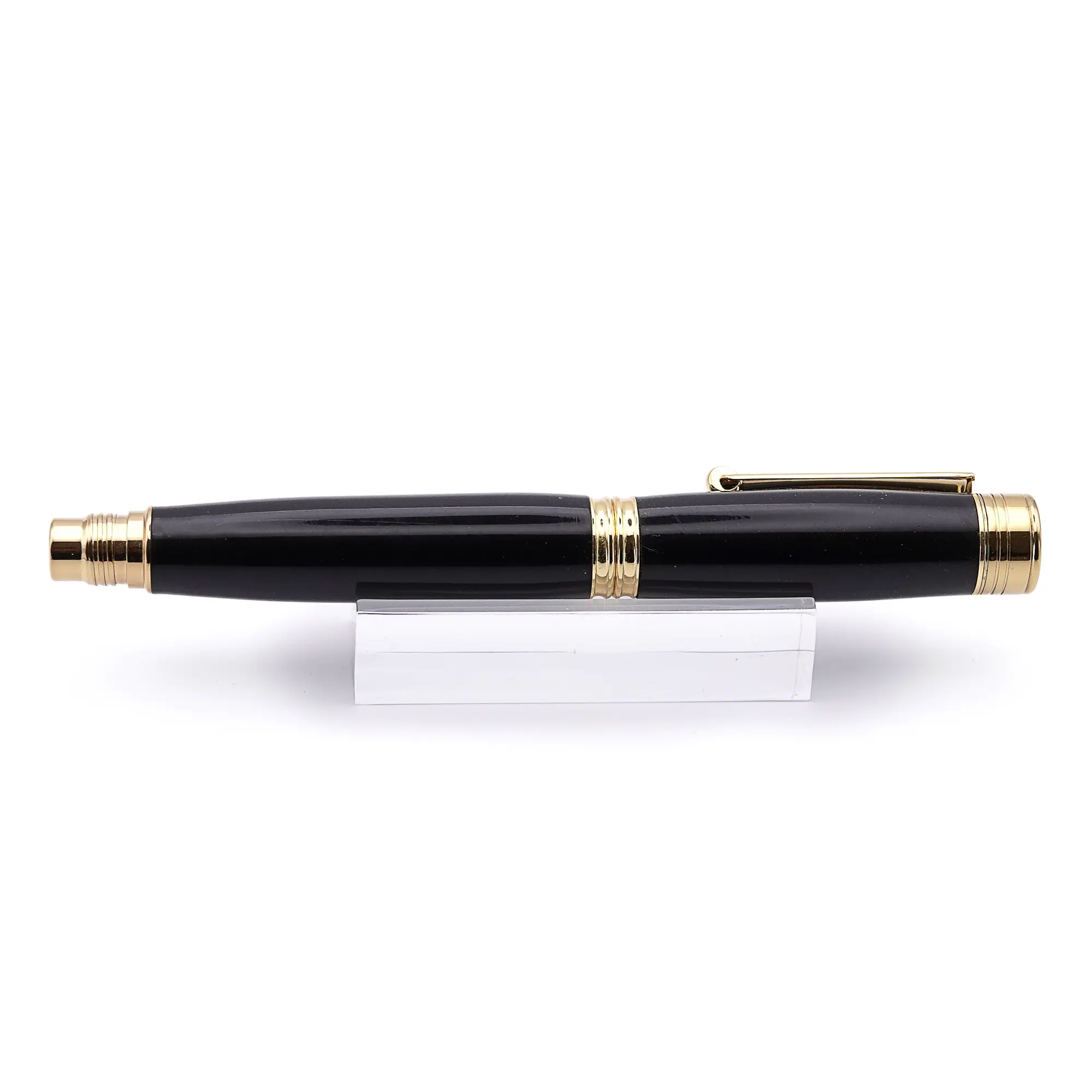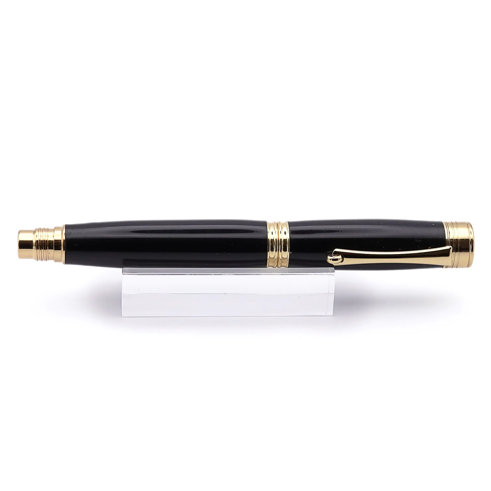 A beautiful Black Resin Fountain Pen with 24 carat Gold Plated Fittings (the pen blank is made by me, and not a bought one) which gives a sophisticated effect that compliments this pen nicely. It is nicely balanced and enjoyable to use.