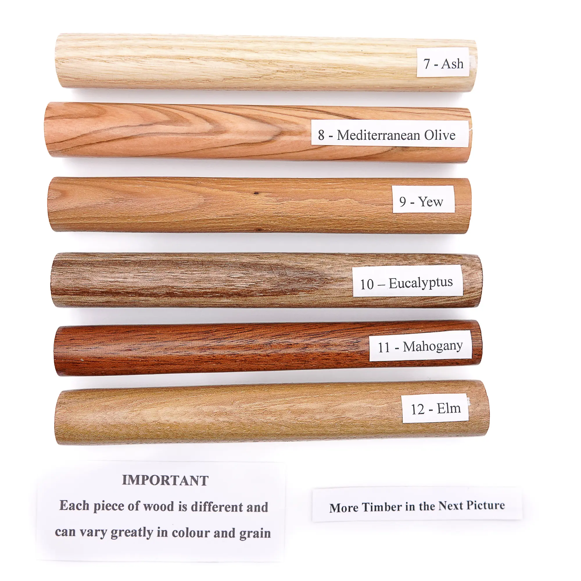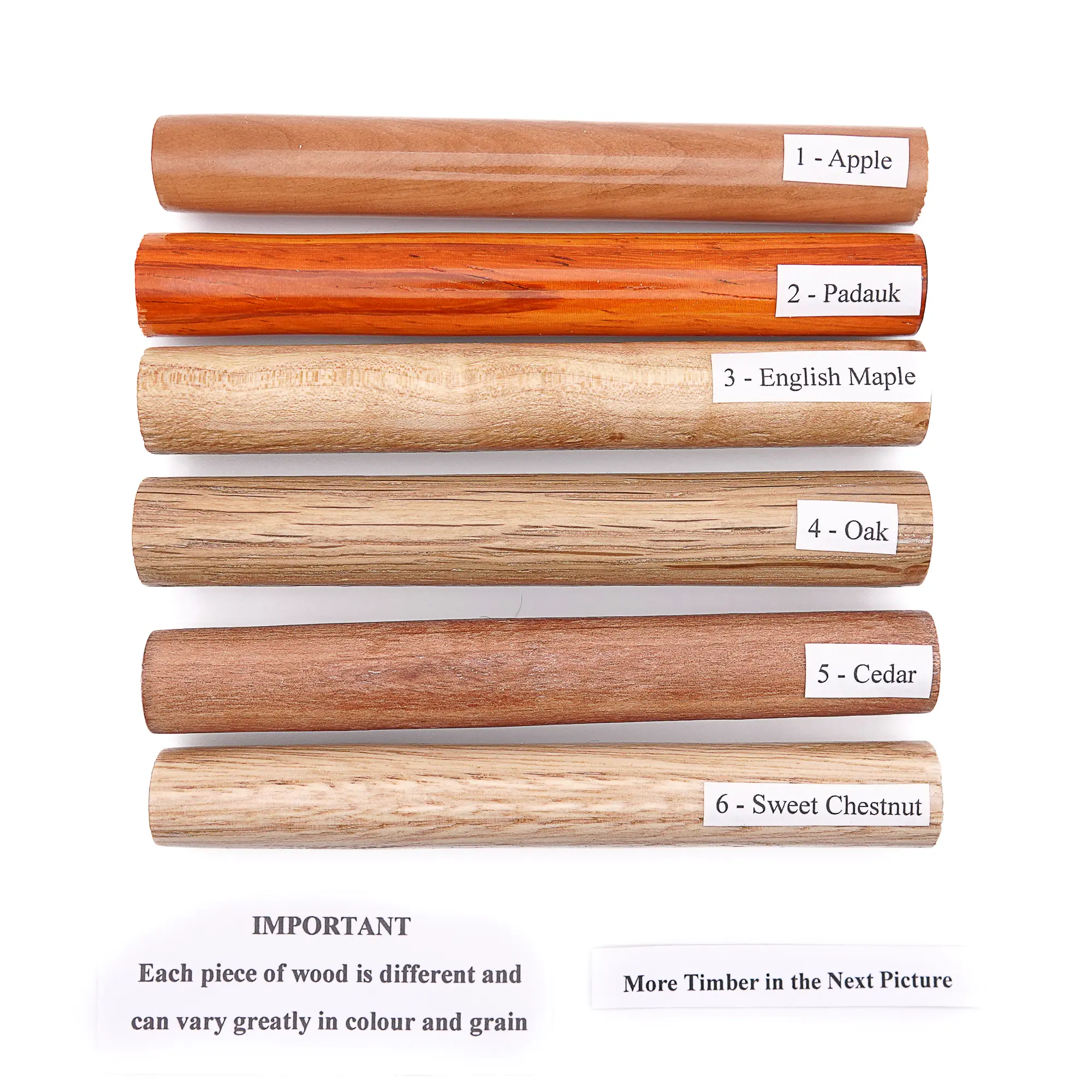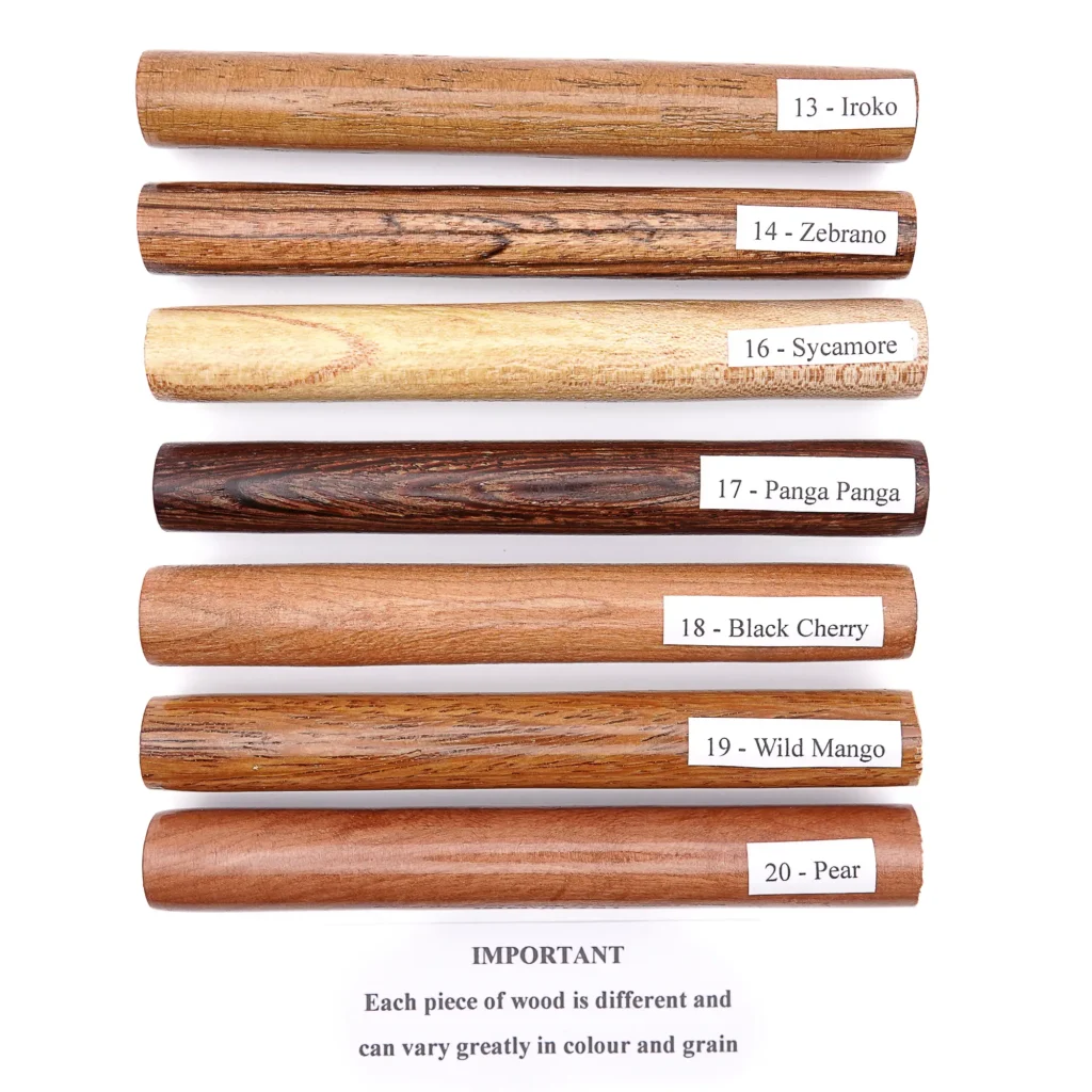 2. Choose the type of timber that you want from the illustrations – remember that every piece of wood is different and colours can vary – make a note of it, to email me after making payment.