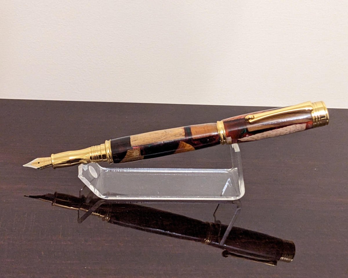 Multicoloured Resin & Wooden Fountain Pen with Gold Plated Fittings (301)